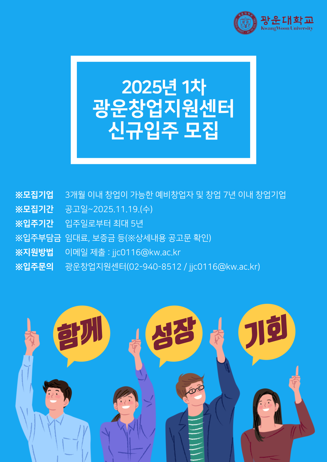 『2025년 1차 광운창업지원센터 입주기업 모집』 중소벤처기업부 지정 창업보육센터인 광운...