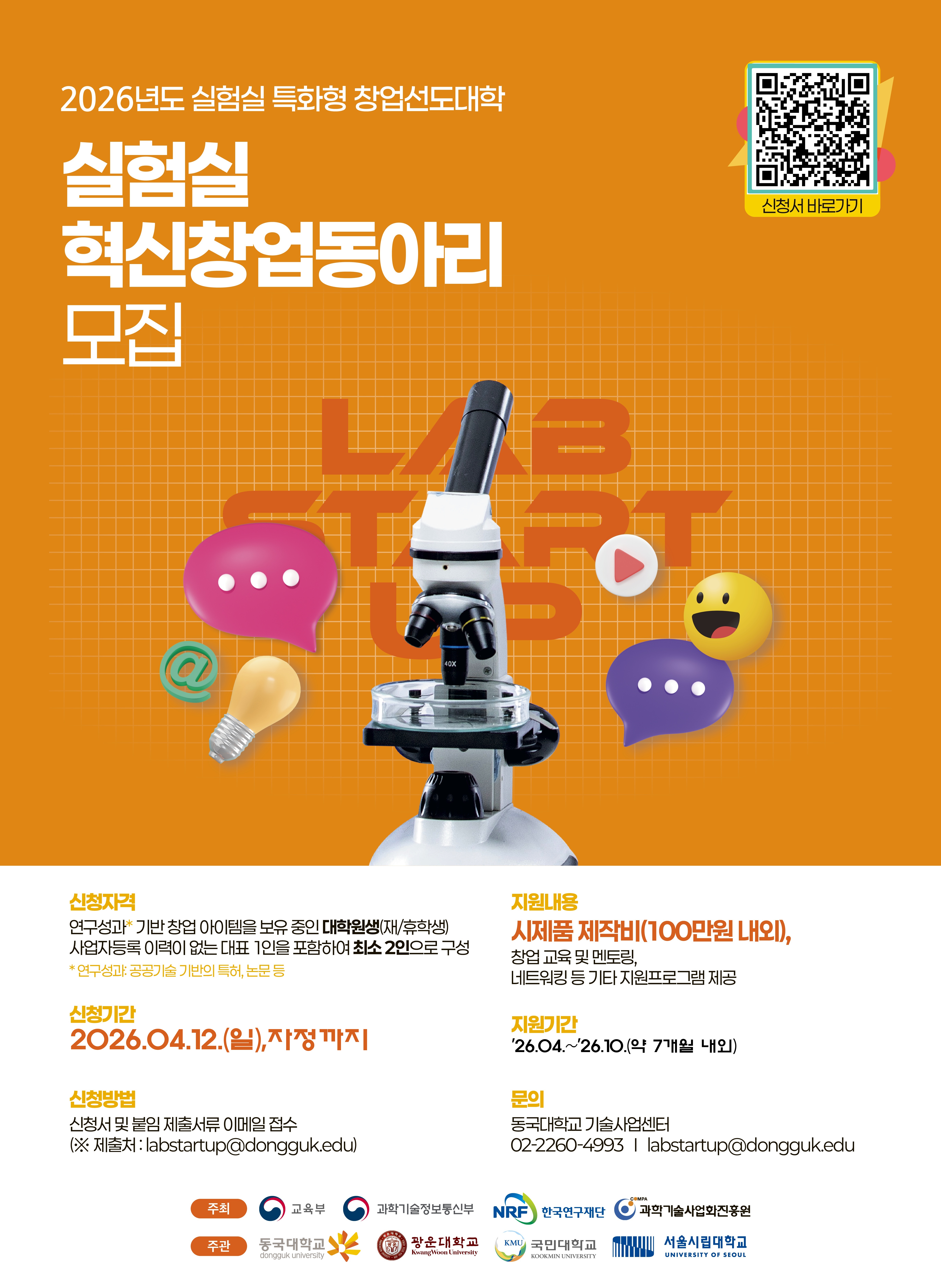 아이디어 구체화를 지원하고자『실험실 혁신창업동아리』를 다음과 같이 공고 및 모집하오니 많은 관심과...