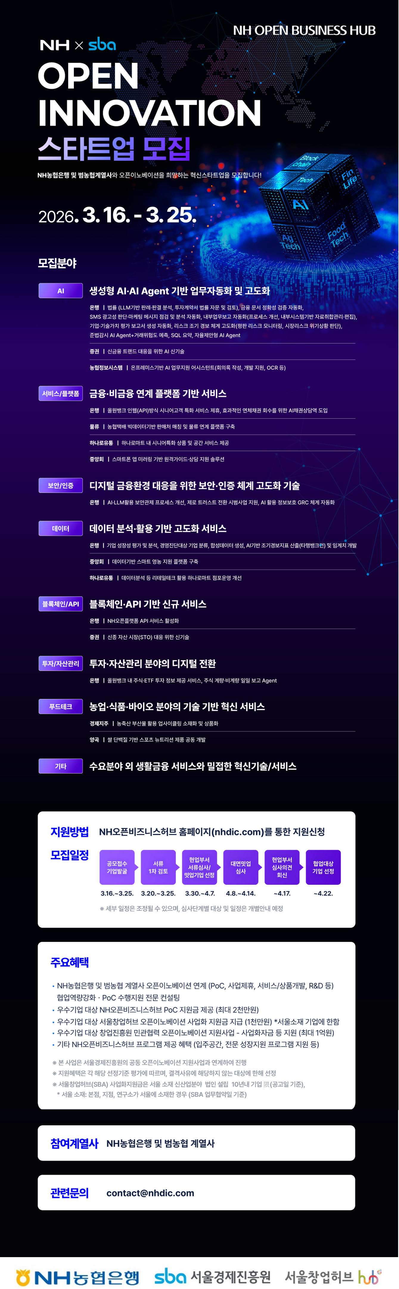 2026 nh open innovation 스타트업 모집nh농협은행 및 범농협계열사와 오픈이노베이션을 희망...