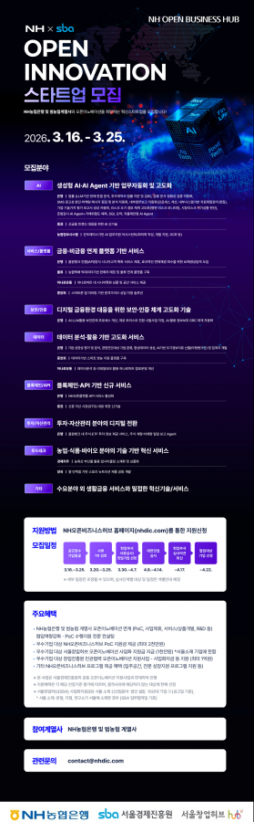 지원방법 : NH오픈비즈니스허브 홈페이지(nhdic.com)를 통한 온라인 접수