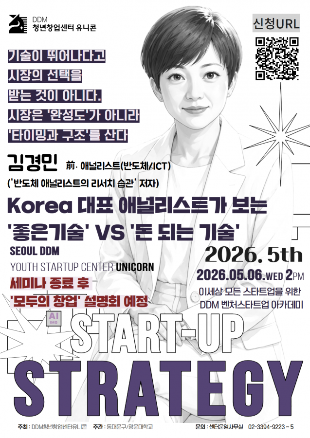 광운대학교 산학협력단에서 운영하는 DDM 청년창업센터 유니콘에서는 [Korea 대표 애널리스트가 보는 '좋은기술' VS '돈 되는 기술']을 주제로